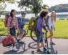 最外层是两个小包,可以装些常用物品,像是饭盒、文具、钥匙之类的,最外面还有个扩展夹子,主要用来挂头盔,实际上对于骑车上下学的孩子来说,戴头盔确实很有必要。