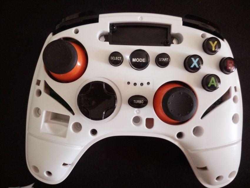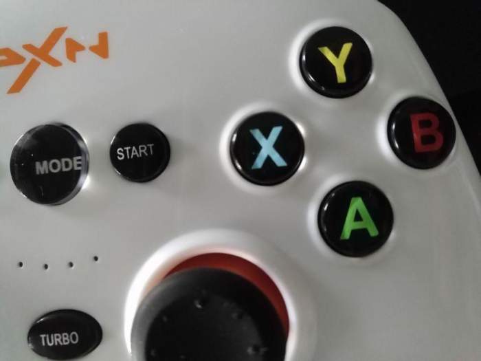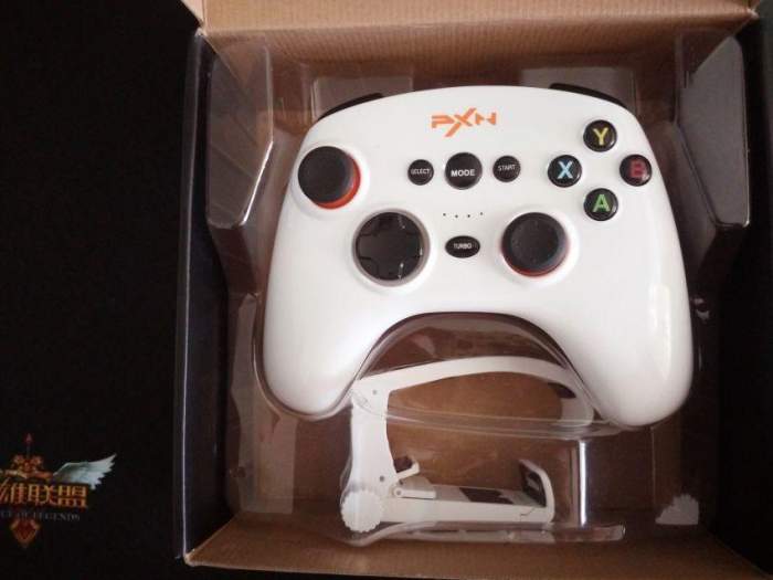 莱仕达天弓蓝牙版手柄标配主体为白色,柄身整体为流线型设计,表面光滑,采用了神似弓的形状。四个动作键用绿A、红B、蓝X、黄Y四个不同颜色的字母区分,并且和开机键均采用了二次注塑成型的水晶工艺,不仅外形美观更增加了抗磨损的能力,手柄顶端设置L\R键及左右扳机键和可充电的数据接口。