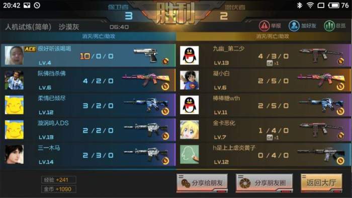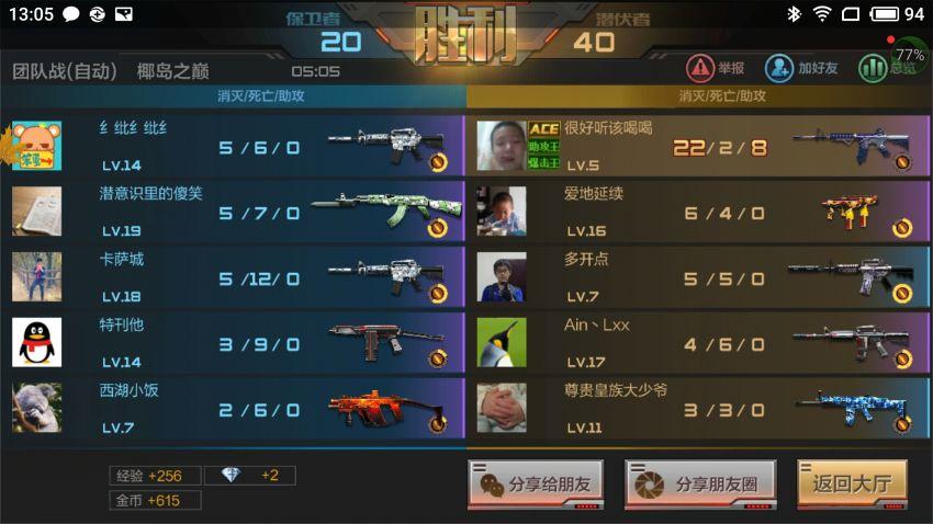 莱仕达天弓蓝牙版手柄在手机上使用要安装新游手机客户端并激活按键映射功能或下载云适配的游戏就可以模拟手机的屏幕操作了。不过莱仕达天弓蓝牙版手柄对于CF的支持是不需要映射的,我用手柄试玩“穿越火线”感觉手柄对于游戏的适配非常到位不论是方向、转身、射击都精准到位。游戏中的所有功能均可以由手柄操作。经过几局的游戏作为新手的我均获得了ACE的荣誉。