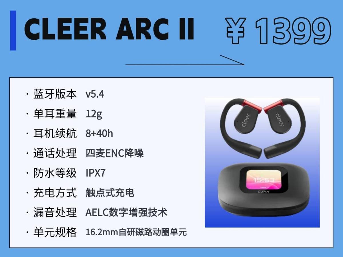 CLEER这款耳机耳挂是可以调节的,能够适应多种耳型;内置16.2mm的动圈扬声器,支持杜比音效并带有杜比头部跟踪,实现杜比全景声沉浸体验,听歌的时候明显感觉还原了歌声的层次感、清晰度和细节;拥有高通骁龙认证和金标认证,是追求高品质无线听觉体验的可靠选择。IPX7的防水级别,无惧雨水暴汗,可以肆意挥洒汗水,运动党可以考虑。