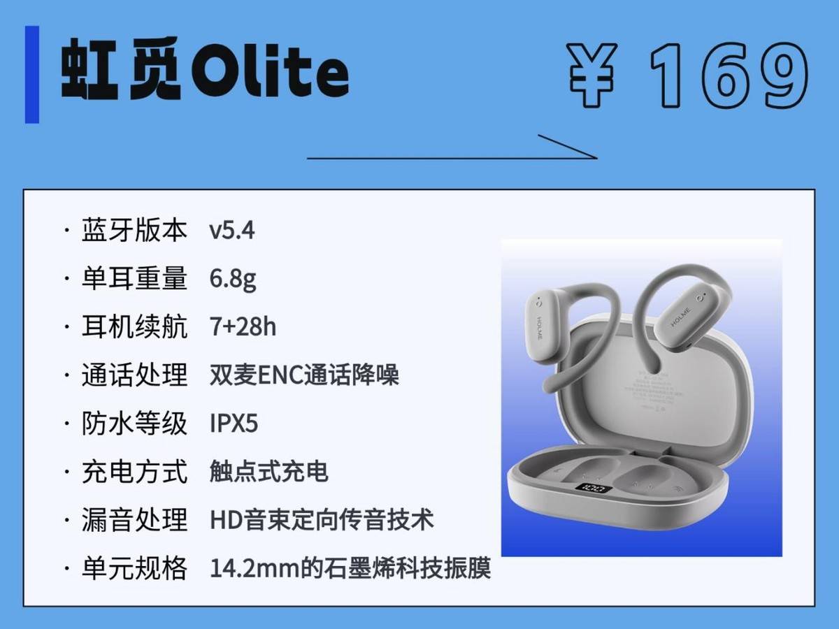 虹觅这款挂耳式的可以说是中端价位的性价比首选。首先它的防水足足有IPX6,像运动的时候流很多汗,都不用担心耳机进水损坏。而且虹觅还自研了防漏音模式,实测真的很好用,打开之后漏音一下就降下来了,再也不用担心打扰身边的人了。除此之外虹觅还创新了充电的方式,改触点式为触片式,不仅充电速度快了,也不会再接触不良了。这款耳机戴着挺舒服的,耳机又轻,怎么甩也不掉。而且搭配充电仓续航可以达到32小时,像我充一次电用一周下来都够用。音质方面我觉得是同价位中音质表现最好的开放式耳机了,听歌的时候觉得声音很饱满,低音听着也挺有力的。