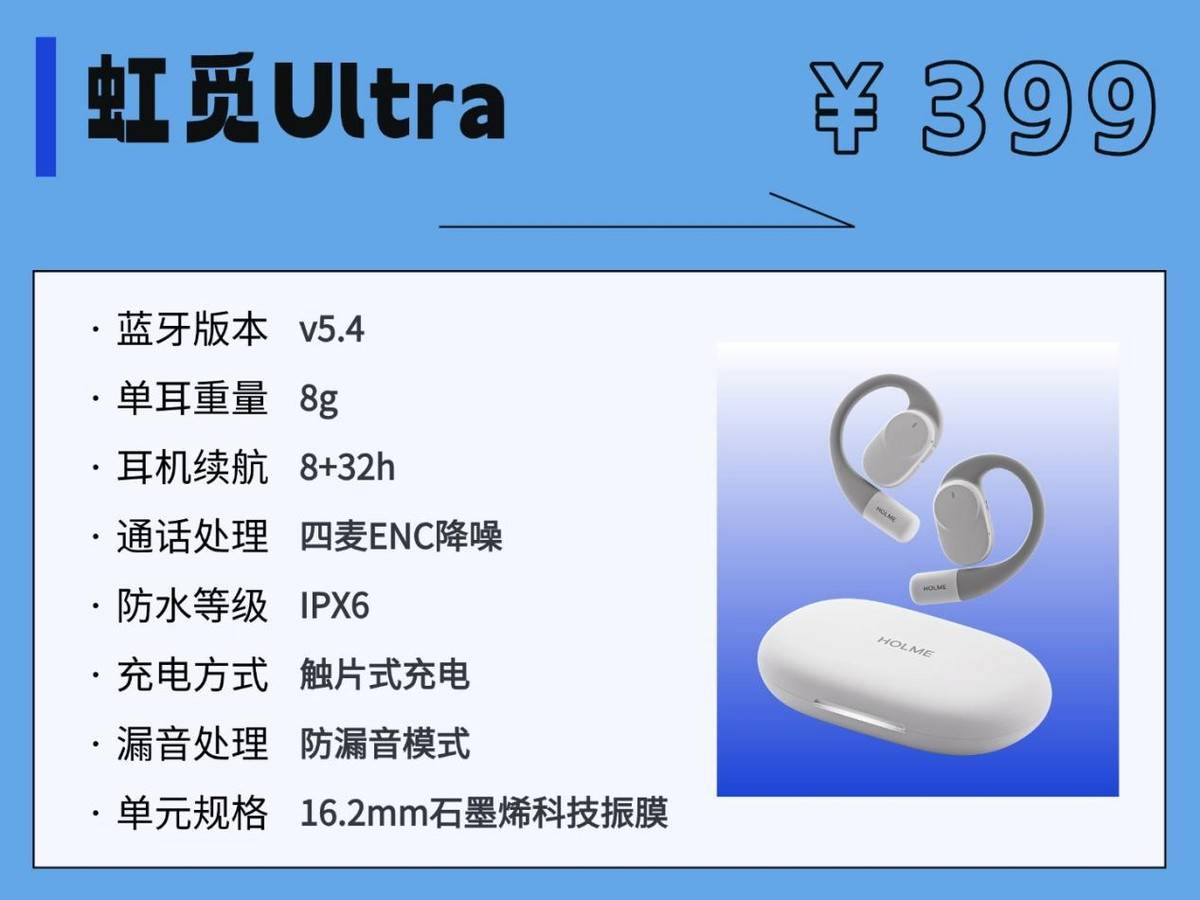 耳机亮点:防漏音模式+触片式充电+IPX6+四麦ENC+流线型设计+单耳8g+虹觅声学调音