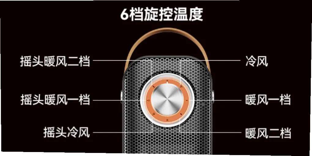 机身外观设计高端时尚很有质感,深灰色的机体外壳搭配了耐高温的金属网罩以及流线型底座,简约又大气;还有那皮质提手和金属色的6挡位调节旋钮,无论放在客厅角落、卧室床边或者办公桌旁,都像一件小巧的艺术品,与多种家居都能完美适配。