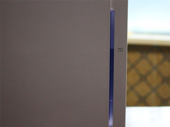 值得一说的是这个水箱有3.5升,容量超大,使用一整夜也不用加水了。水箱内部有一个MAX值的水位线标注,虽然量很大,但也要注意别加超了。