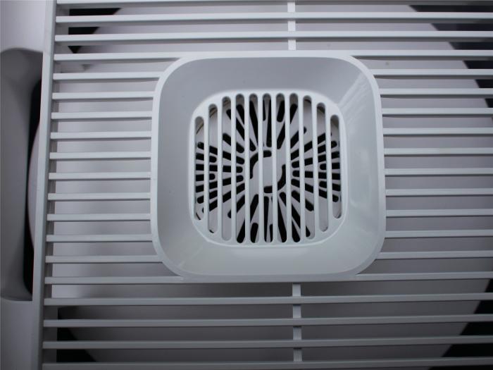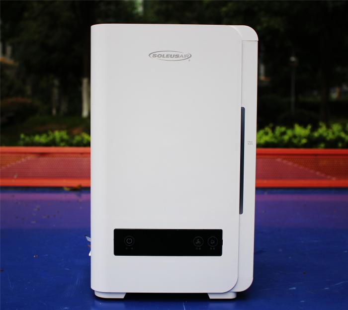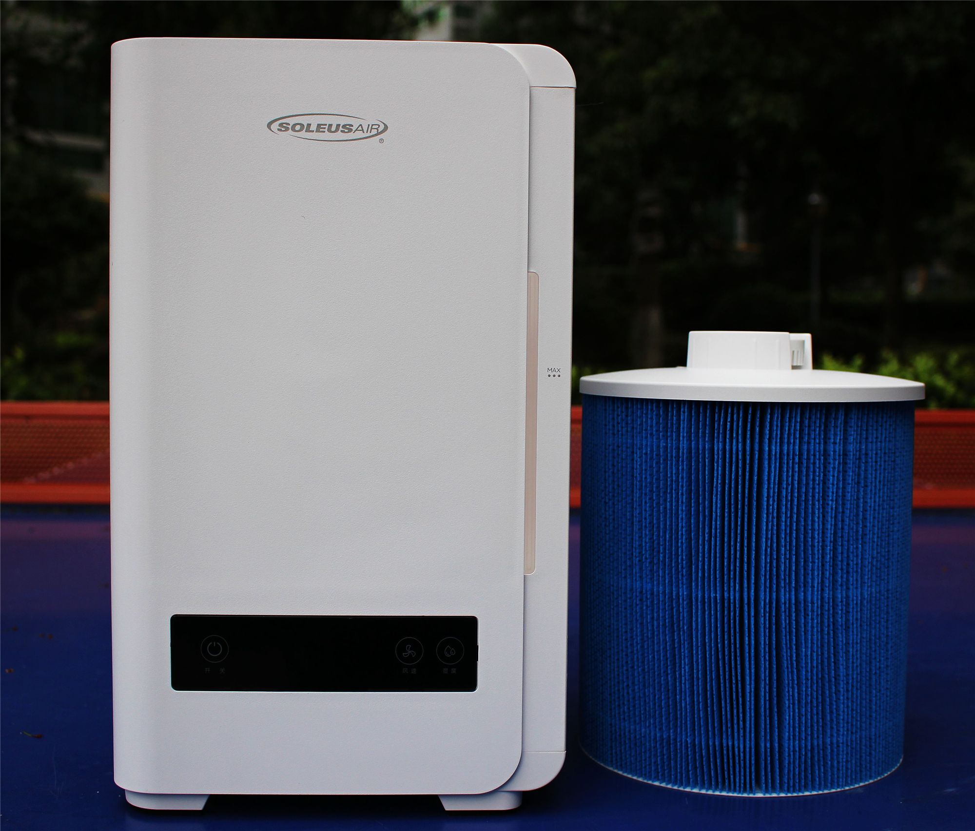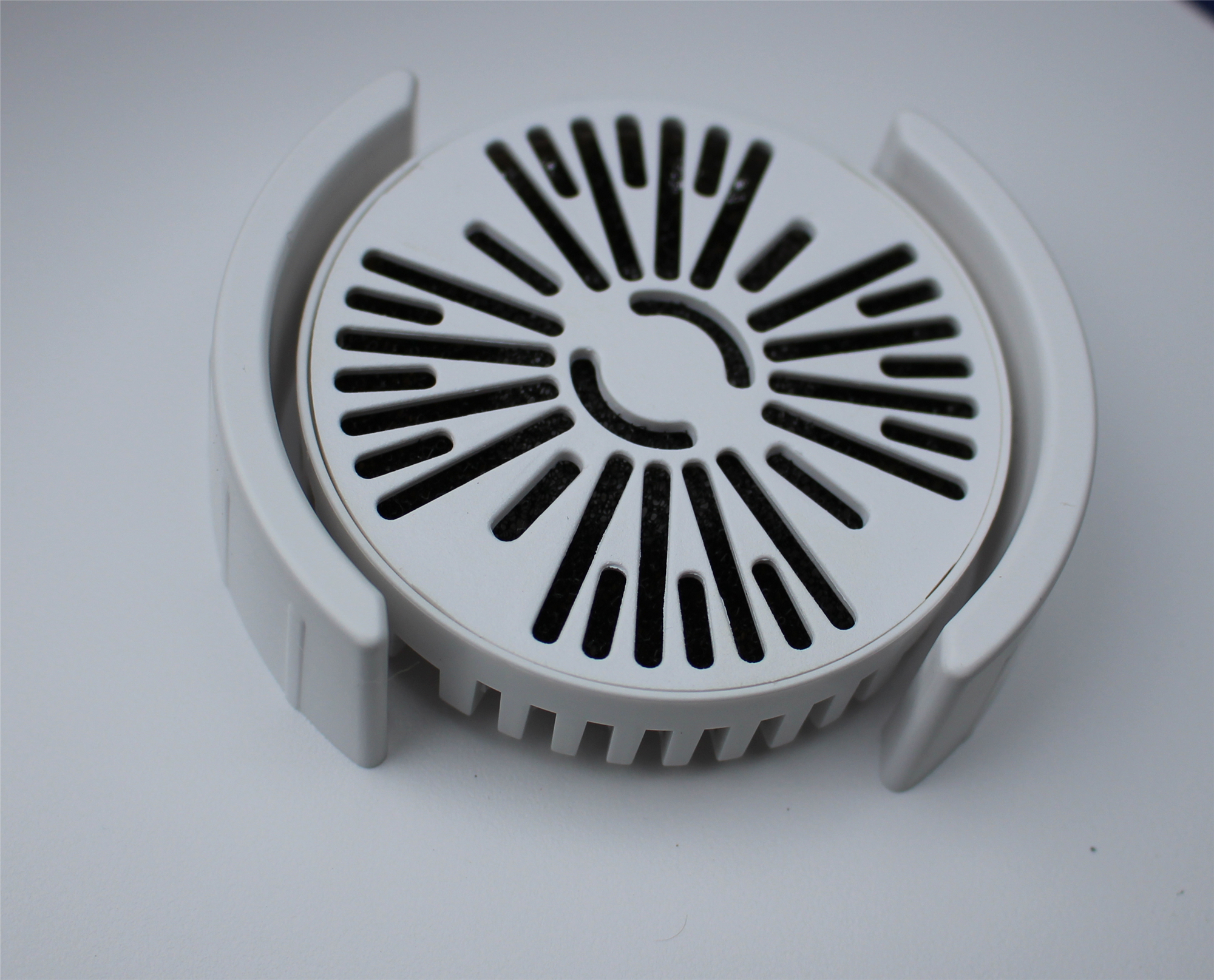 因为是冷蒸发加湿,需要风扇助力将空气从下至上吹入,舒乐氏在机器底部还加了一个初效尼龙滤网,初步拦截地面或者桌面的灰尘和毛发,养宠家庭也可以放心使用了。