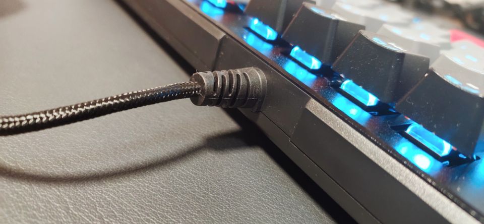 相比较无线连接,我其实更加青睐于即插即用的便捷,利用自带的USB口插入,等待几秒钟驱动安装即可使用。完全摆脱蓝牙版本以及信号强度的制约。另一大优势就是线控键盘延迟低,尤其在玩一些枪战类和动作类等即时游戏时,对比过后才会发现有线键盘是真的爽。