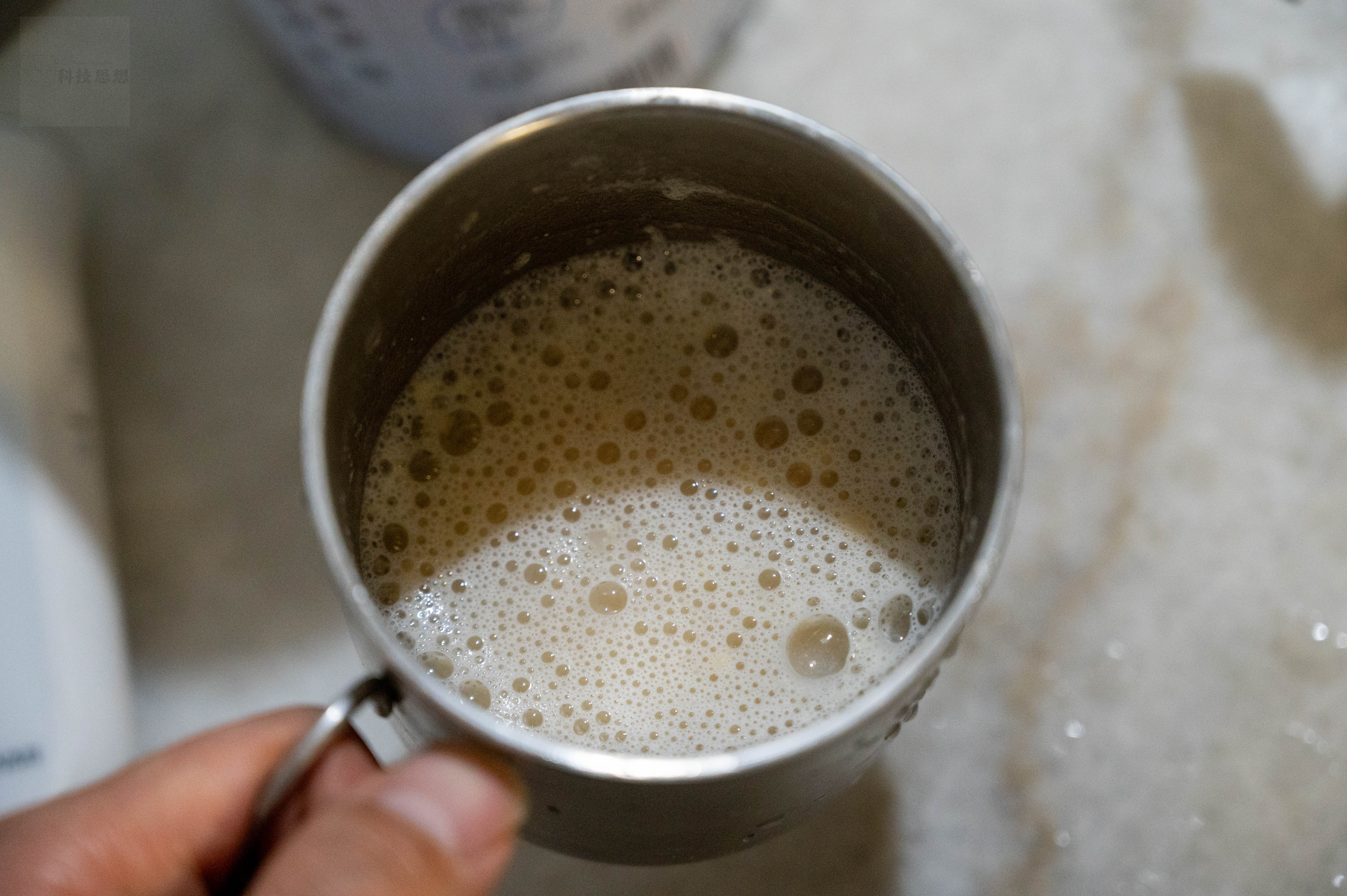 使用搅拌勺进行顺时针搅动,粉粒在水中快速扩散,大约30秒后,液体已呈现均匀状态,杯底无明显沉淀。静置五分钟后观察,溶液透光度一致,杯壁和杯底均未出现结块或颗粒挂壁的现象。这种溶解表现,说明这款蛋白粉的8层超滤提纯和小分子酶解技术非常有效,能够减小蛋白质分子的粒径,从而提升其在水中的分散速度和稳定性。