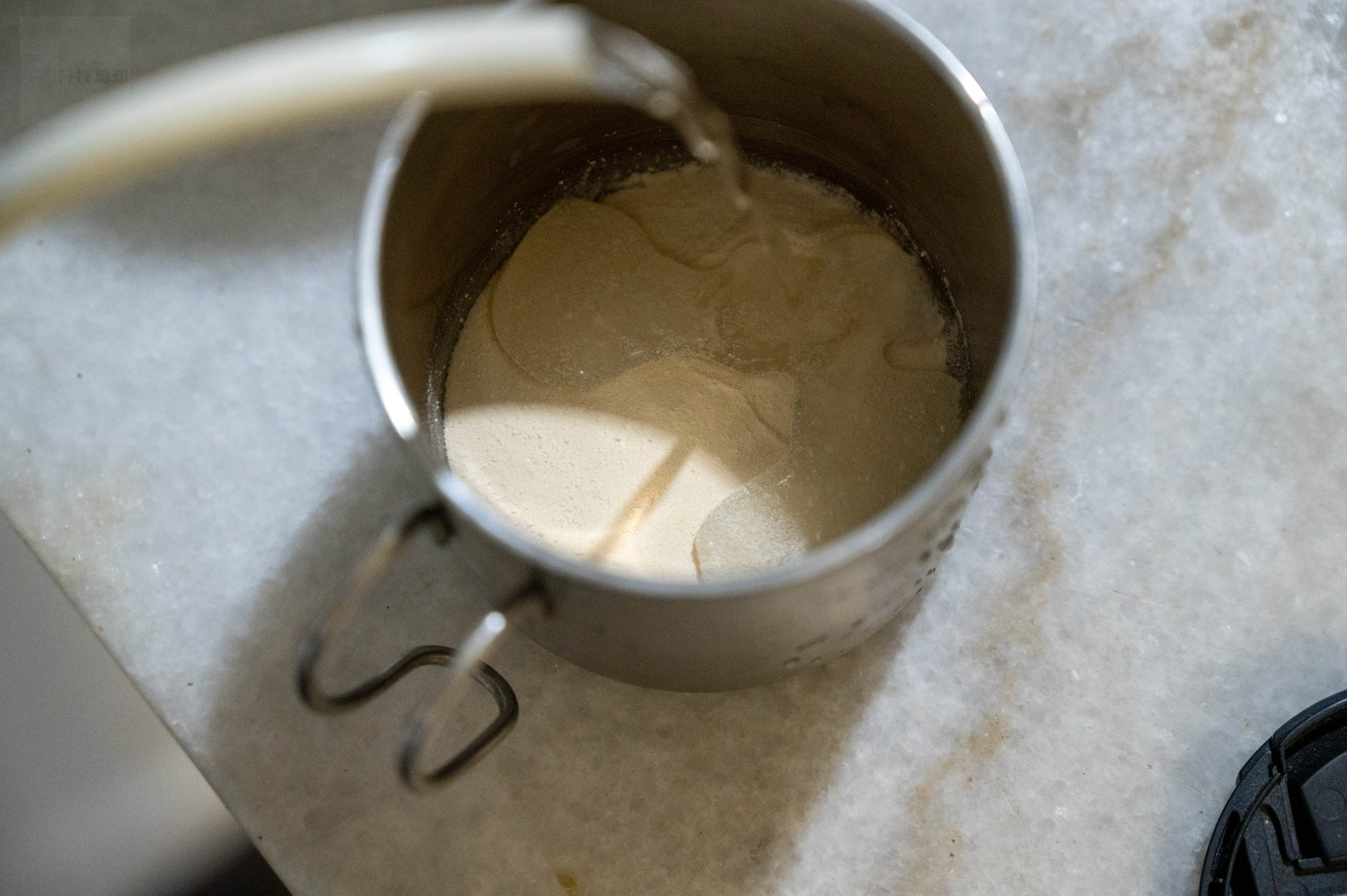 蛋白粉的溶解性表现对于吸收影响很大,在室温环境将20克蛋白粉缓缓倒入250毫升温度40摄氏度左右的温水中,粉体在与水面接触后迅速下沉,并未漂浮或产生过多粉尘。