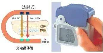 接着,我们了解一下脉搏血氧仪的工作原理 脉搏血氧仪是用于测量血液中氧气饱和度(SpO2)和脉搏的仪器,监测氧气浓度和脉率,用于检测缺氧症状。血氧饱和度是血液中被氧结合的氧合血红蛋白的容量占全部可结合血红蛋白容量的百分比,即血液中的血氧浓度,是呼吸循环的重要生理参数。测量原理是还原血红蛋白(Hb)、氧合血红蛋白(HbO2)对红外光、红光的吸收率不同,用这两束光照射人体指端再由光学传感器获取,检测出的数据差是测量血氧饱和度最基本数据。屏幕上通常显示血氧饱和度(SpO2)、脉率(bpm)。