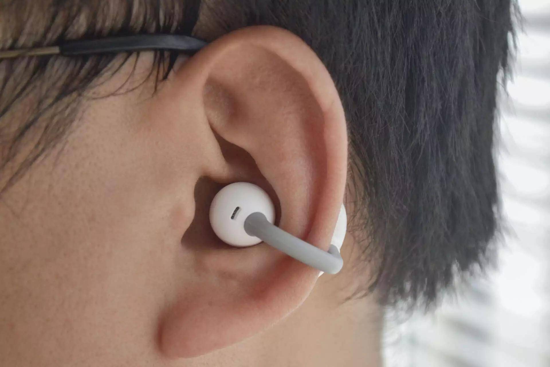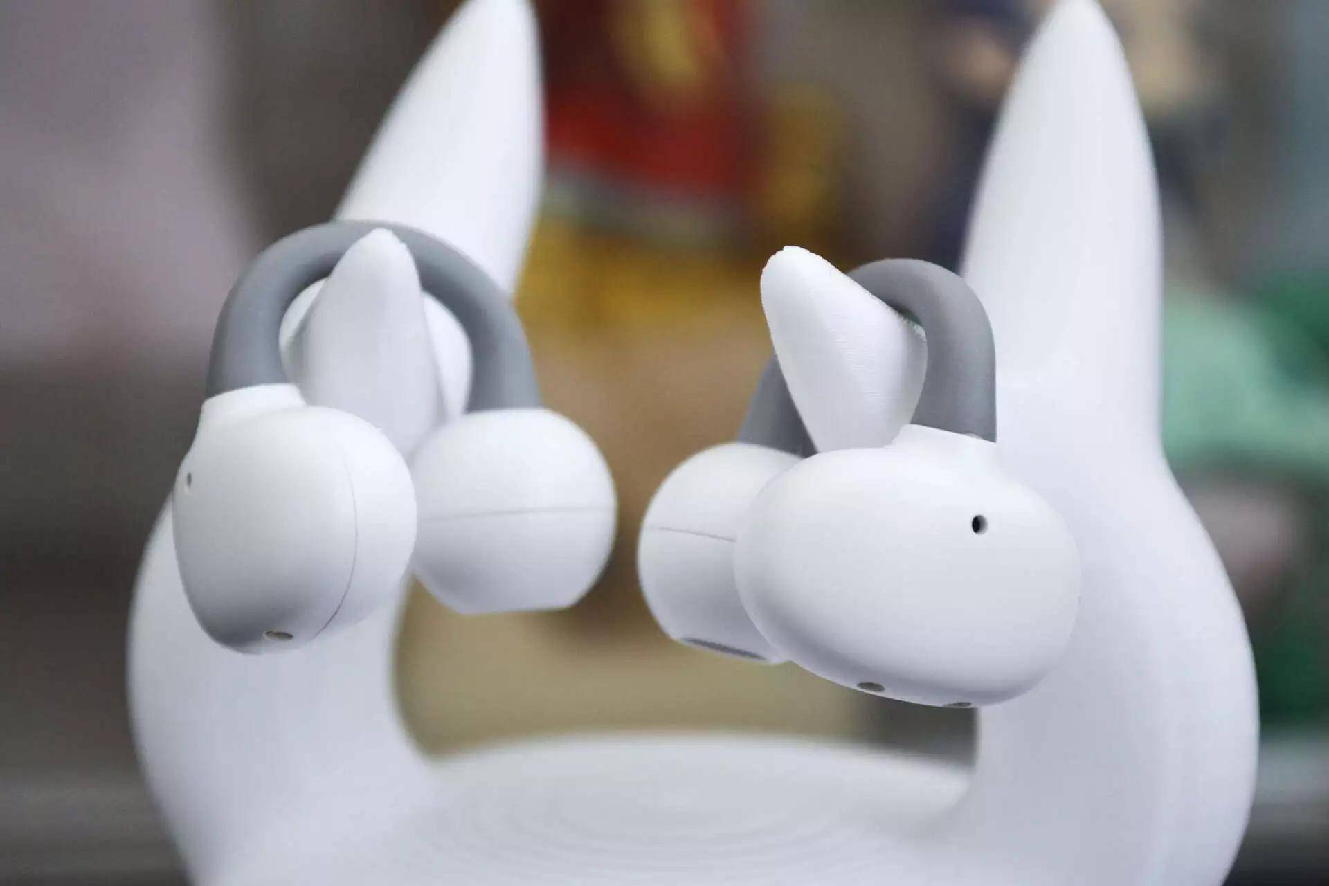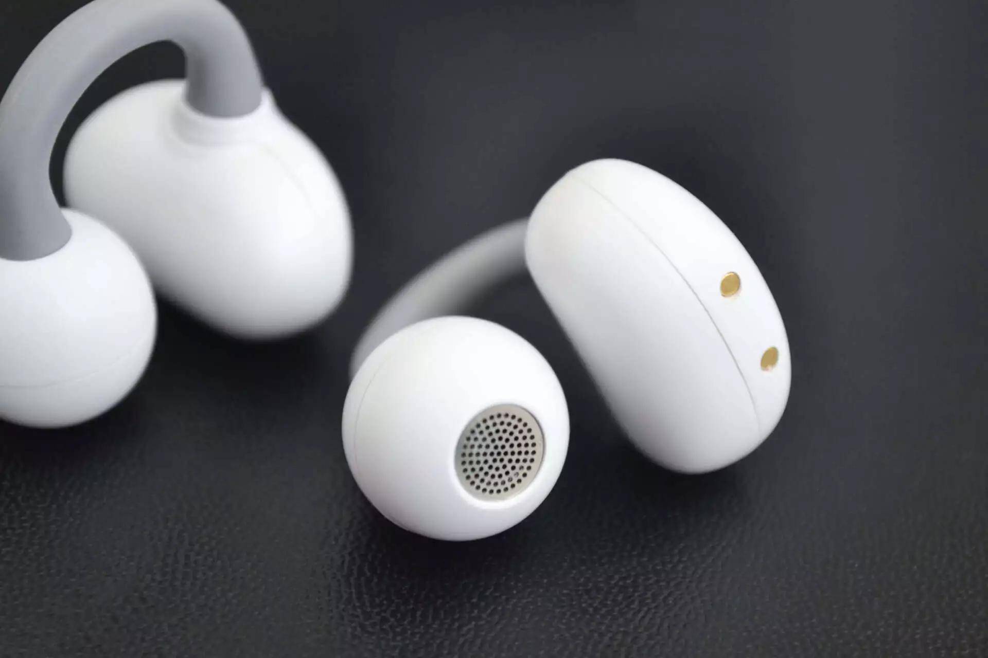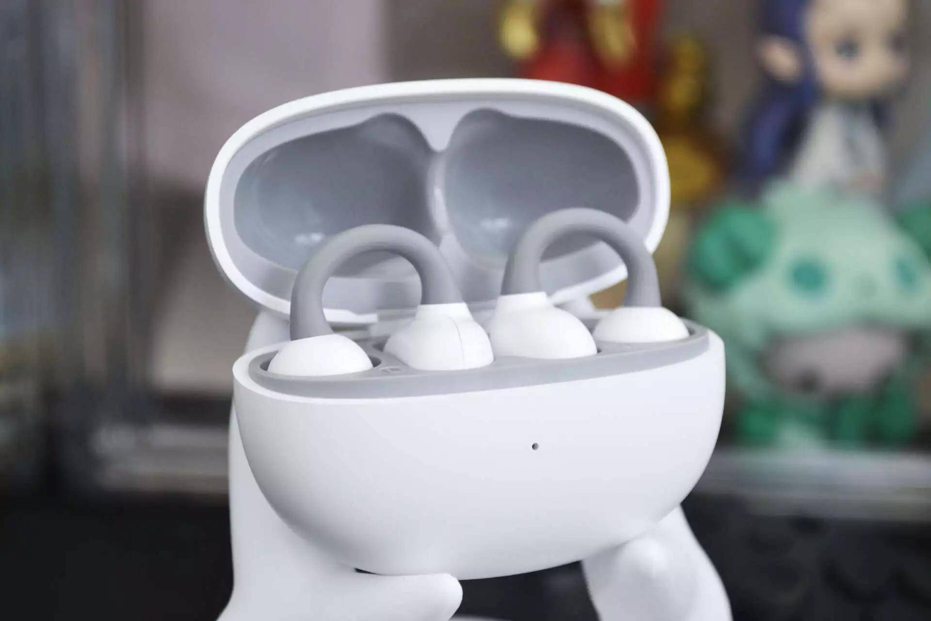 这耳机最绝的是“耳夹式设计”,还搞了个2.5mm错位结构,前高后低贴在耳廓上,耳后还有小支撑,戴上去跟耳朵“锁死”了似的。晨跑时我蹦跶、拉伸、甚至差点绊倒踉跄,它都稳如老狗——以前担心耳机掉,现在担心“会不会把耳朵揪下来”(开玩笑)。