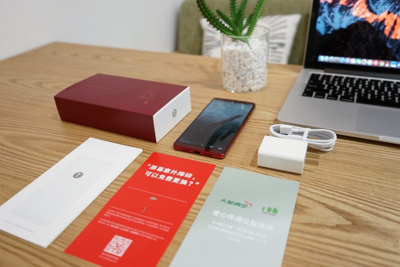 坚果Pro 2特别版的配件包含充电器、数据线、说明书、碎屏险卡片、这差不多就是产品的全家福了。对笔者来说,国产手机的配件都差不多,更关心的是手机本身的体验。