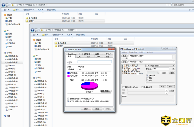 笔者用FastCopy软件进行了主机内的M.2硬盘与麦沃K3095A五盘位硬盘拷贝机的硬盘之间的相互读写性能测试。笔者选择了单个约34G的大文件和3377个共约233MB的零碎小文件进行测试。在写入性能测试里,麦沃K3095A五盘位硬盘拷贝机的单个大文件写入速度是133.5MB/S,这个速度是正常速度。
