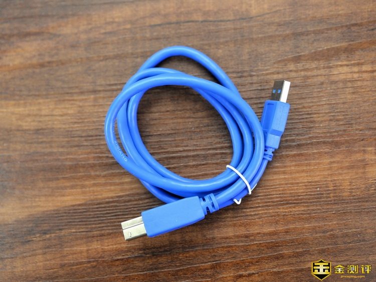 数据线是USB 3.0 Type-B的规格,这种接口目前比较少。如果能换成Type-C就方便了。线材比较粗,做工不错。
