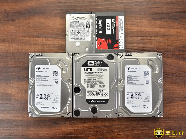 为了测试麦沃K3095A五盘位硬盘拷贝机,笔者准备了5块不同的硬盘,分别是120G的金士顿SSD,东芝2.5英寸500G笔记本硬盘,西数黑盘1T,2个希捷3T监控盘。