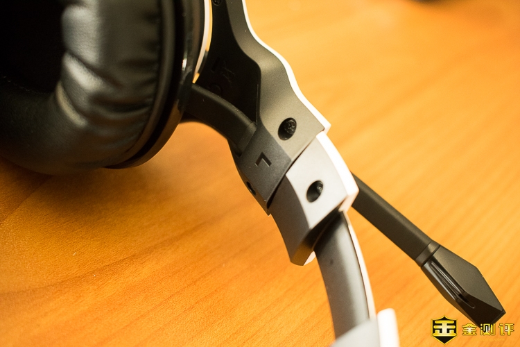 从侧面看,耳麦是从耳罩的下半部出来的,整体搭配得当。