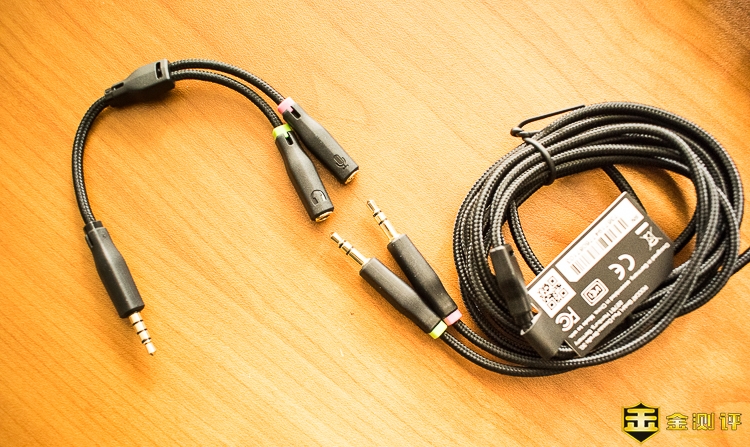 线长估计有2米左右,足够一般的游戏只用,同时还配有3.5mm接头转接头,可以用在只有3.5mm接口的设备上。