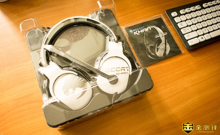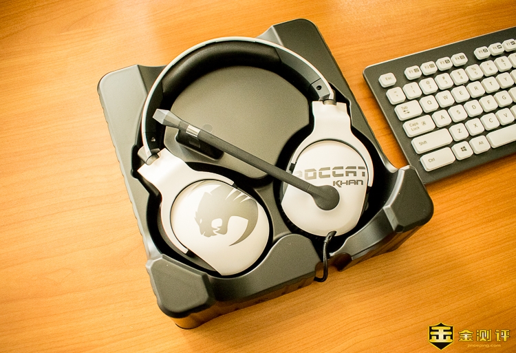 拿掉透明盖子,可清晰看见耳机的外观,黑色的耳麦、白色的耳罩、整体简洁大气。耳机被很好的固定在底座上。
