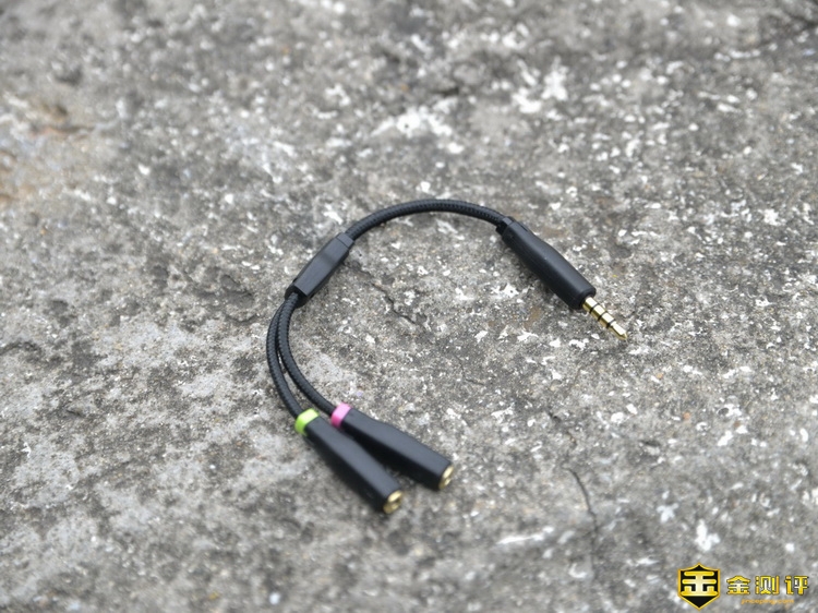 这条耳机麦克风一分二转接线的做工和质量也是相当的不错,采用镀金接口,并且线材都包裹了蛇皮网。