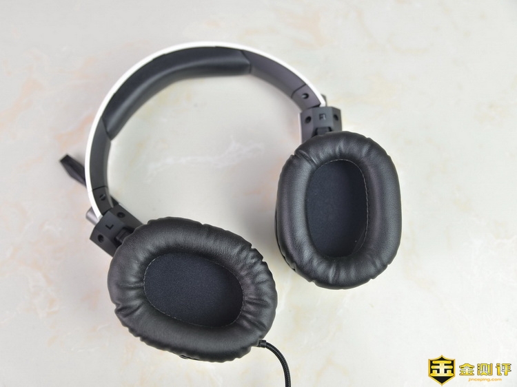 冰豹ROCCAT® KHAN PRO Hi-Res高解析音频认证游戏耳机的耳罩,采用了荔枝纹的人造皮革材质,内里是适合长时间游戏的记忆海绵耳垫,耳罩质感非常好,细腻顺滑,柔软舒适。佩戴的时候,感觉非常舒服,不会有被挤压的感受,而且透气性也不错,长时间佩戴后仅觉得有些热,但是不会感觉闷。