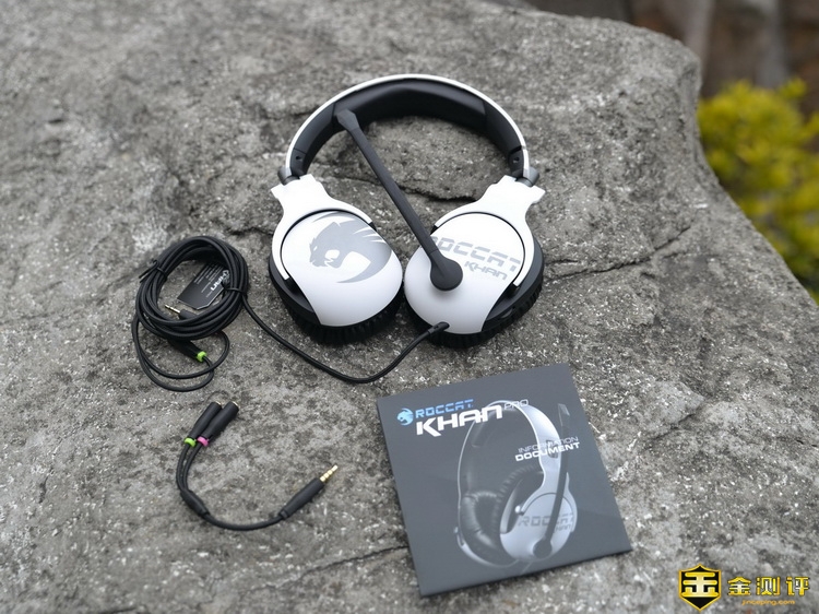 冰豹ROCCAT® KHAN PRO Hi-Res高解析音频认证游戏耳机的包装清单比较简单:包含了冰豹ROCCAT® KHAN PRO Hi-Res高解析音频认证游戏耳机本体,一条耳机麦克风一分二转接线,以及一份详细的使用说明书。