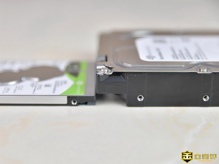 这时候靠近硬盘一侧的支架条就不能安装了。以为侧面支架条是针对3.5英寸硬盘设计的,2.5英寸硬盘的孔位低于3.5英寸硬盘,所以这时候支架条无法完全装入,前端会弹出。