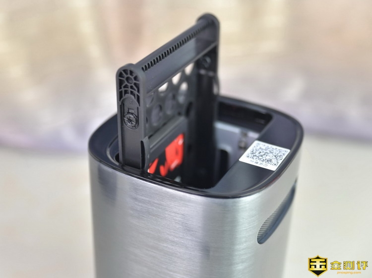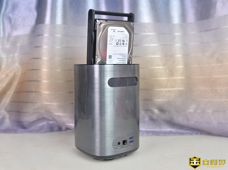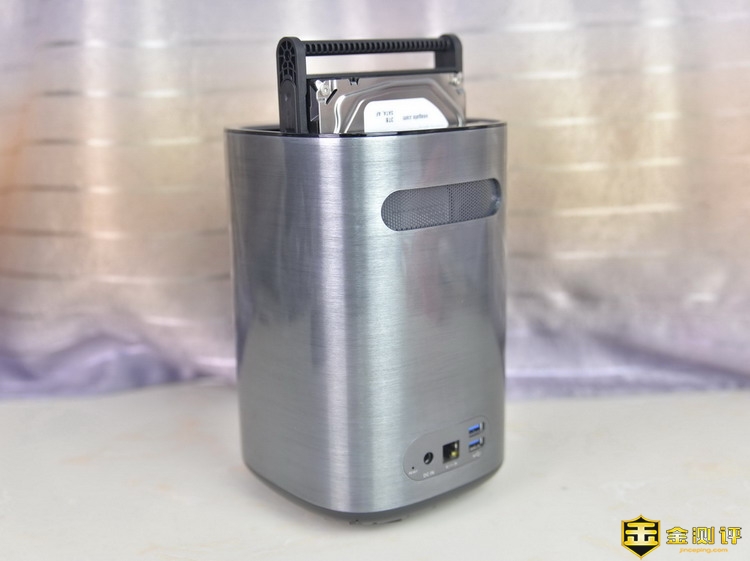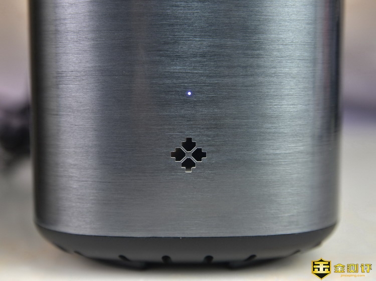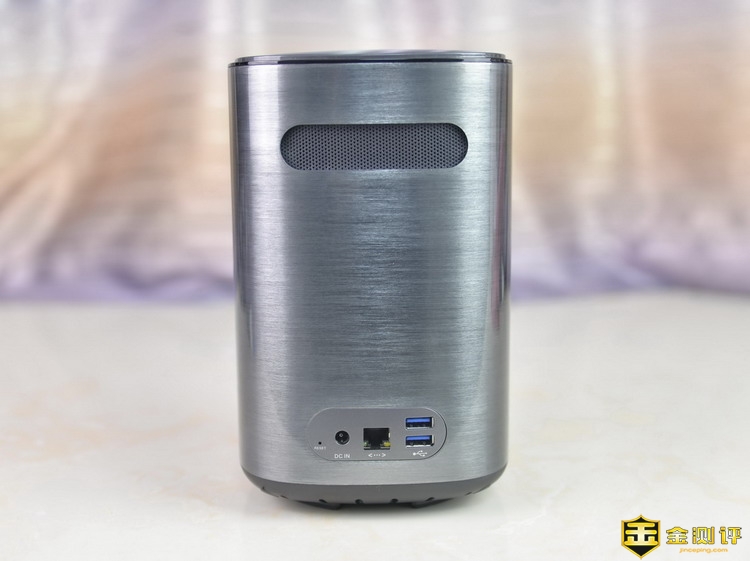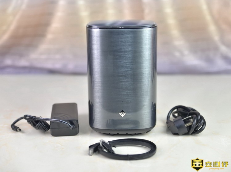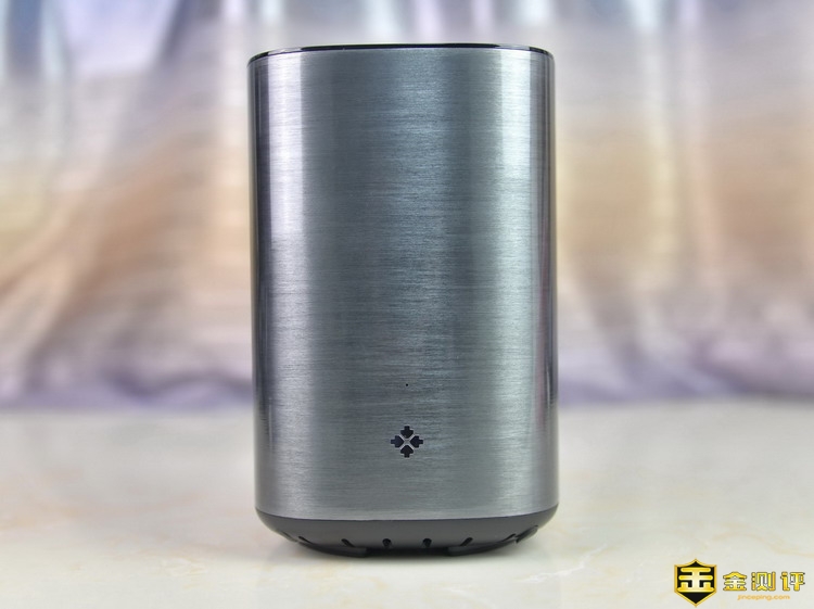 先河私有云服务器是桶型外观,采用全金属外壳,并且经过拉丝工艺初一,精心打磨,外观非常的漂亮,镜面效果很强。这样的设备,不管摆放在家里的哪个位置,都不会显得突兀不和谐。机身三维为135*135*215mm,体积不大,重量为1.46kg,这是空箱的重量,加上硬盘后就有一定分量了,不过无所谓,因为谁也不会把NAS经常移动。机身正面仅有一个金属标和一个指示灯。