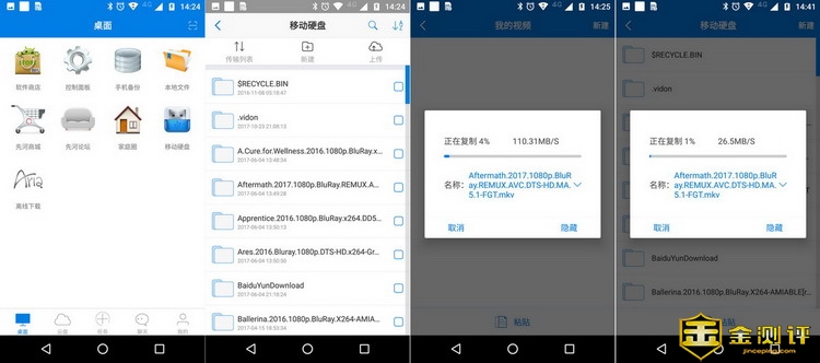 从移动硬盘下载文件到本地硬盘上的速度在60-80MB/S之间。这几个测试除了上传到移动硬盘上的还是偏慢,其他都还是正常的。不管是哪个速度,在局域网下观看先河私有云服务器中的电影,都不会卡顿,而且时间轴切换也非常轻松。