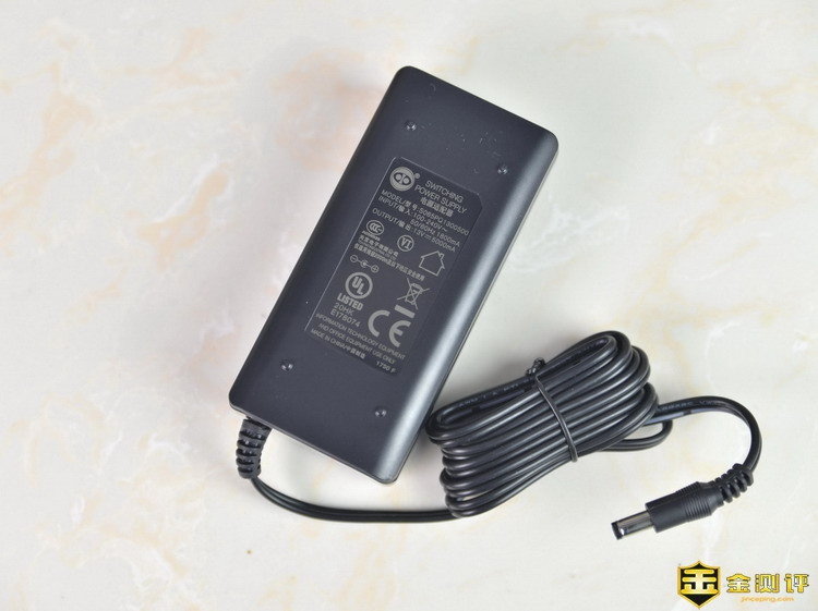 电源适配器也颇为特别,指示灯外围有WIFI状纹路,并且四边圆弧过渡,外观很精致,电源适配器的输出电压和电流是13V/5A,功率围65W。