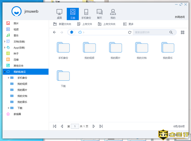 windows端的云盘分类比APP详细很多,但是功能是一样的,只不过上传的时候需要在私有云下才行,其他如照片,视频之类的分类是不允许上传的。