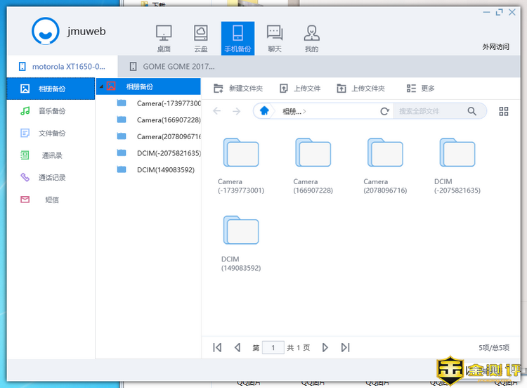 手机一键备份这个功能对笔者来说很实用,尤其是近期,因为笔者的手机出现了一些毛病,需要返修,备份手机中的数据非常麻烦,有了这个功能,笔者睡觉去开始备份,醒来的时候就全部搞定了,很方便。手机备份可以选择相册,音乐,文件,联系人,短信,通话信息。其中相册,音乐和文件还能选择需要备份的文件夹。而联系人,短信和通话记录则能在云端直接查看,很方便。