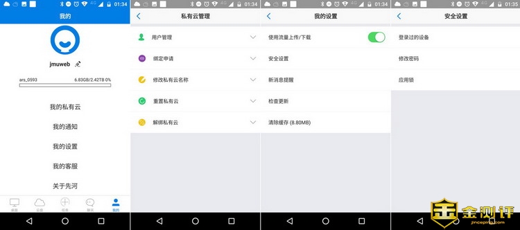 在“我的”项目中,可以查看先河私有云服务器硬盘容量的使用状态,由于笔者是先河私有云服务器的管理员,所以还能管理私有云,对用户进行管理,对绑定申请进行查看,修改私有云名称,重置私有云,解绑私有云。重置私有云就是对硬盘再进行一次初始化,可以重新选择硬盘模式。在我的设置里,要开启流量上传下载才能使用手机通过4G网络远程上传下载先河私有云服务器文件。不然在上传下载列表中就会出现等待的提示。
