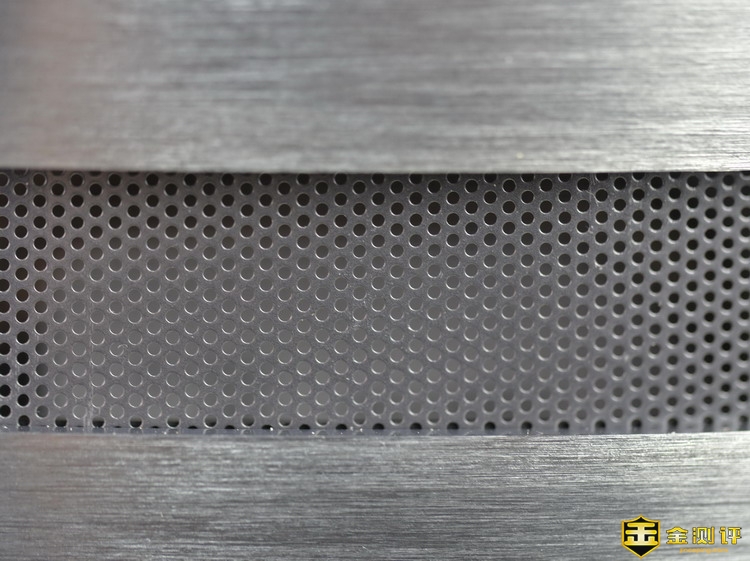 金身的背面就相对丰富一些,在上方开了进风口,并且附上了网孔细密的金属网罩,避免灰尘异物从这里进入。