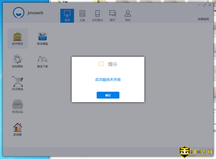 以上就是安卓APP的各种功能了,虽然家里使用安卓手机和平板,但是在家的话,我更多的是用电脑。Windows端的先河私有云APP功能整体跟手机差不多,但是没有手机备份和本地文件两个项目,但是手机备份转到大项里去了。对于Windows端跟手机端重复的功能,笔者就不赘述了,只讲讲windows端特有的功能。另外,虽然功能模块里,也有软件商店,先河商城,先河论坛,但是同样的是未开放。
