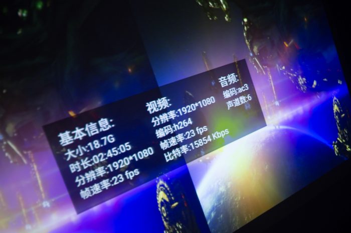 除了利用酷乐视R4S的视频平台提供给用户强大的视频资源外,用户也可以使用现有的视频资源让酷乐视R4S播放出来,我们只需要把优盘或者移动硬盘插入酷乐视R4S即可识别到了。这里我使用了4个视频文件进行了播放测试。让我惊奇的事情发生了:如下图所示,这是一个容量高达18.7G的4K视频,H264编码,酷乐视R4S播放它非常轻松,但问题来了,我优盘里的三个MP4电影文件(这些MP4文件容量也就控制在2GB以内,资源来自BT无极论坛)居然都出现了音画不能同步的情况,画面卡顿严重,声音也无法同步,无论硬解软解都无法达到正常观影的目的。我一开始以为是酷乐视R4S内置的播放器UI-LocalMM惹的祸,但我使用应用商店下载的暴风影音和MoliPlayer都是如此......。