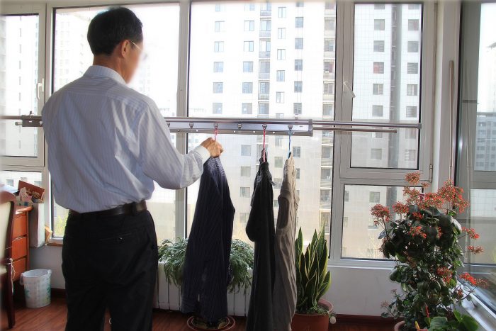身体娇小的老娘,挂取衣物都不费力。