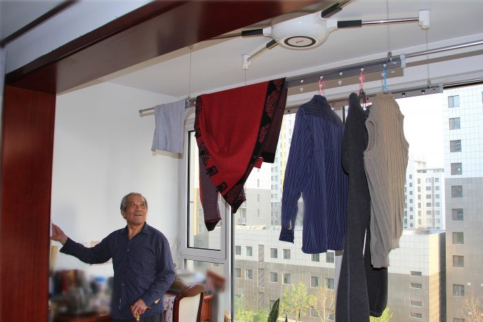 挂好衣物后,腿脚不利索的老爸,饶有兴致自告奋勇去操控晾衣机,让衣物飞起来。另外,晾衣杆在下降过程中如果遇到障碍会自动停止,可以防止碰到下面活动的小孩子,考虑的蛮周到的。