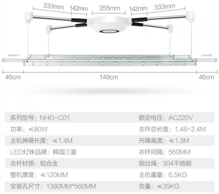 下面了解一下晾衣机的主要参数和功能。