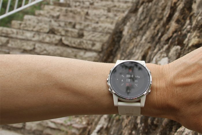 而气温测量就差强人意了,二十出头的实际气温,居然显示为32度,不过这也是难以避免的,毕竟手表贴在手腕上,无法避免体温辐射影响,要想准确测量气温,就只能把手表摘下来进行测试了。测了半天了也走累了,坐下来歇歇,就摆个poss拍个照的功夫,就被好奇的路人追问这款手表的牌子?是哪里买的?看来铁腕5还是蛮有吸引力呢!