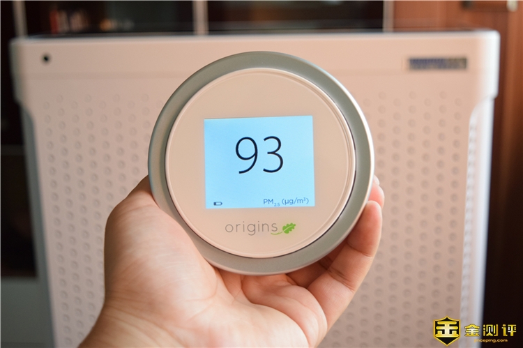 通过手中的空气检测仪,对于安美瑞X8除二手烟版的一次空气净化能力做了下测试,通过测试当前室内的PM2.5值为51,将空气检测仪放到出风口处,可以看到PM2.5值迅速降为1,由此可以看到空气净化器的一次净化能力还是很不错的。