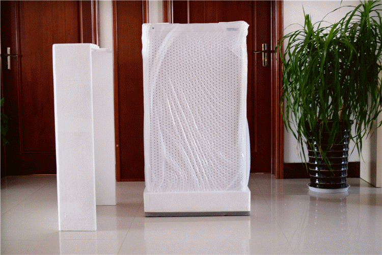 取出最外层的包装盒后,可以看到净化器被包裹在厚厚的泡沫之中,而且在净化器外还有一层防护膜,这样可以有效避免净化器在运输过程被损坏,也能看的出厂家对于包装设计方面还是很用心的。
