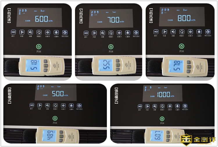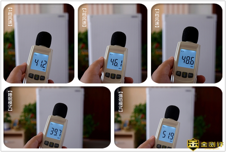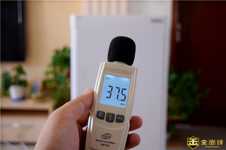 这里模拟我们日常的使用过程,在距离净化器1.5m左右的距离再次进行噪音测试,这次就是对3档手动风速、睡眠模式和强劲模式进行测试,初始环境噪音依旧按37.5dBA,1档风速噪音为41.2dBA,2档风速噪音为46.1dBA,3档风速噪音为48.6dBA,睡眠模式为39.7dBA,强劲模式为51.9dBA,这个噪音表现还是很不错的,要知道1档风速就已经拥有600CADR的净化能力了。在此距离内,睡眠模式下基本不会感到机器的运行,但依旧能提供500CADR净化力。