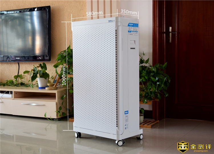 安美瑞X8除二手烟版的产品尺寸为1060mm*570mm*350mm,整机重量约30kg,高度超过了1米,不过作为一款拥有1000CADR值的超大功率净化器来说,这个体积也算是正常水平,更适合在客厅等较大的房间使用。