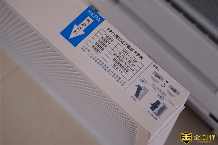 除烟网和活性炭过滤网采用一体式设计,在滤网的顶部右侧印有产品参数和滤网拆卸方法,PPFT高效过滤器的正面为除烟网,背面为黑色的活性炭过滤网,拿在手中还是明显感到很有分量的,应该有两三斤左右,可以看得出用料还是很足的,其中活性炭过滤网采用了PP蜂窝骨架设计,由除醛改性碳、纳米矿晶、硅藻纯、除醛宝等材料组成。
