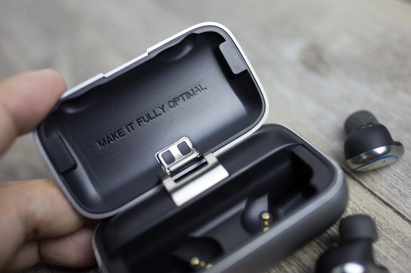 耳机放回充电盒子的时候会关闭电源并进入自动充电状态。需要注意的是第一次使用它们时需要做一次手动配对,配对方法这里就不啰嗦了,大家可以仔细看看说明书,还是比较简单化的。只要手动配对过一次,那么以后拿出耳机就会自动配对了。
