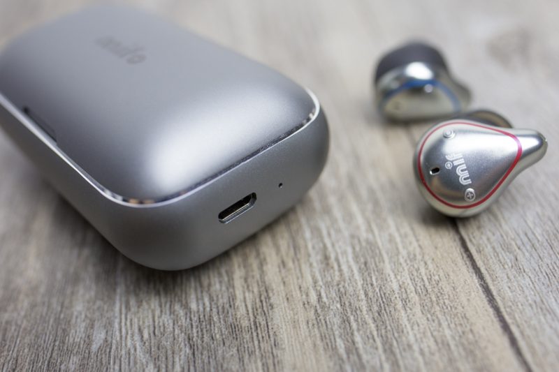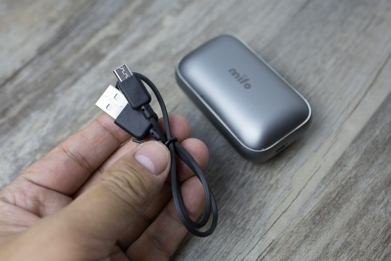 充电接口设计在盒子侧边,比较传统的mini USB接口,充电规格是5V-1A,充电速度会比较慢一点,但充满电的续航足以让人满意,毕竟耳机内置的锂电才60mAH,而且耳机本身的播放时长可以达到7小时,充电次数大家自己算算,基本上是15次光景,续航方面完全不用担心。
