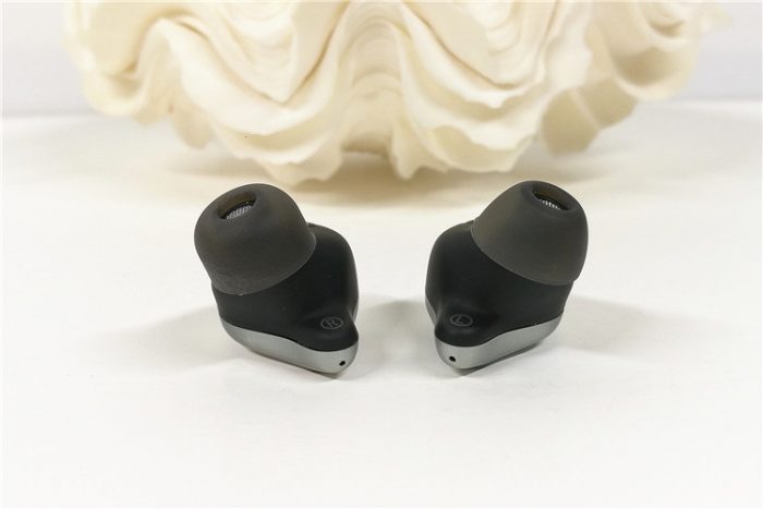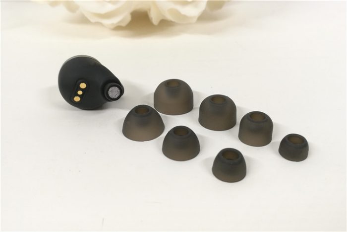 底部带有三个铜制圆形充电电极,入耳端的出音孔带有严密的金属丝网,安装硅胶套的头部为变径设计,每个耳机配有七种不同规格的极为柔软的硅胶套,保证总有一款适合你的耳孔,再加上仅仅4克的重量,让你佩戴无压力,感觉更舒服。