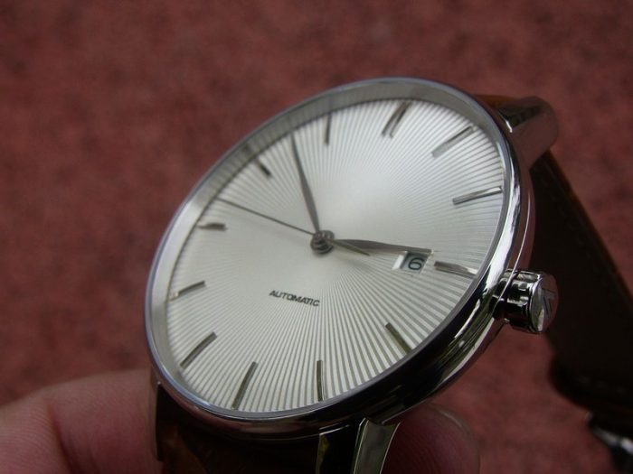 可以看到TwentySeventeen轻派机械表表盘是非常精细的,表面采