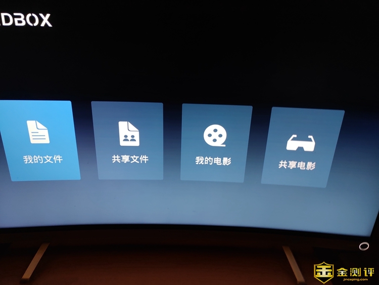 在看下在电视上、盒子上,安装APP进入后,看见4个方框。我的文件、共享文件、我的电影、共享电影。