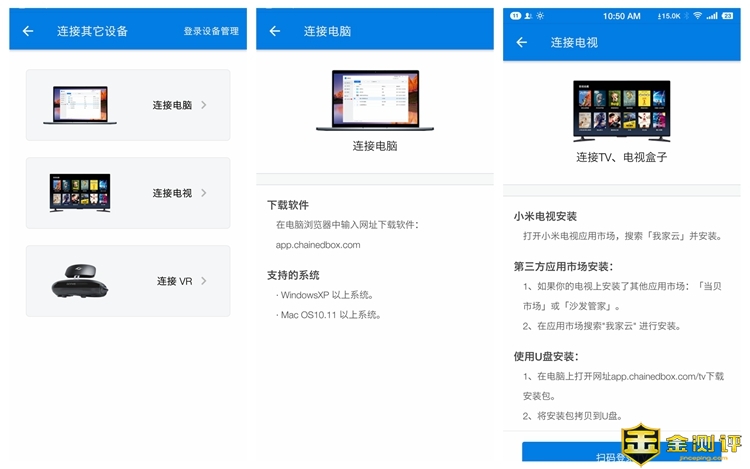 在电脑上需要安装软件,在盒子上安装APP,在VR上,我没有VR不关心。