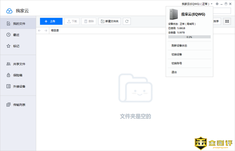 PC端的功能如此之少让笔者非常意外,因为笔者感觉PC是功能最强大的,最起码功能也要跟手机端齐平呀,应该还要更强大才是。结果PC端主要是文件的上传下载,共享圈,外接设备,没有最重要的云下载功能,笔者一开始还以为BT种子的下载功能会在PC端里出现。